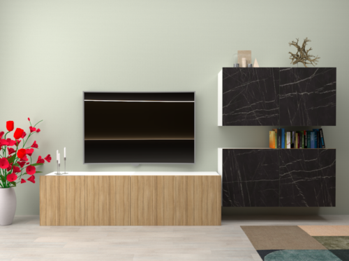 Madia sospesa Sofia con ante pietra nero e grigio