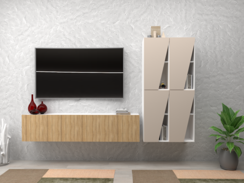 Madia sospesa Sofia con ante bianco effetto legno