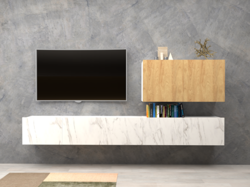 Madia Alba sospesa con cassettoni bianco effetto legno