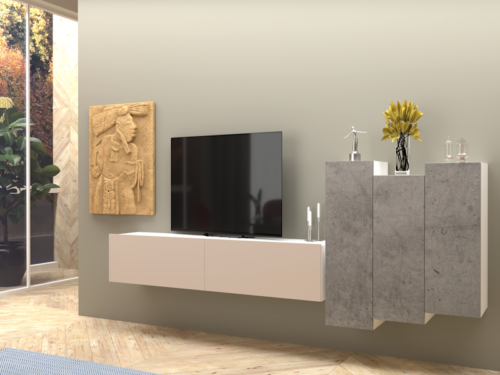 Madia sospesa Sofia con ante calcestruzzo Chicago