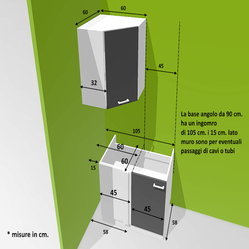 - Misure cm. L. 60 x 60 P. 32 al fianco H. 72